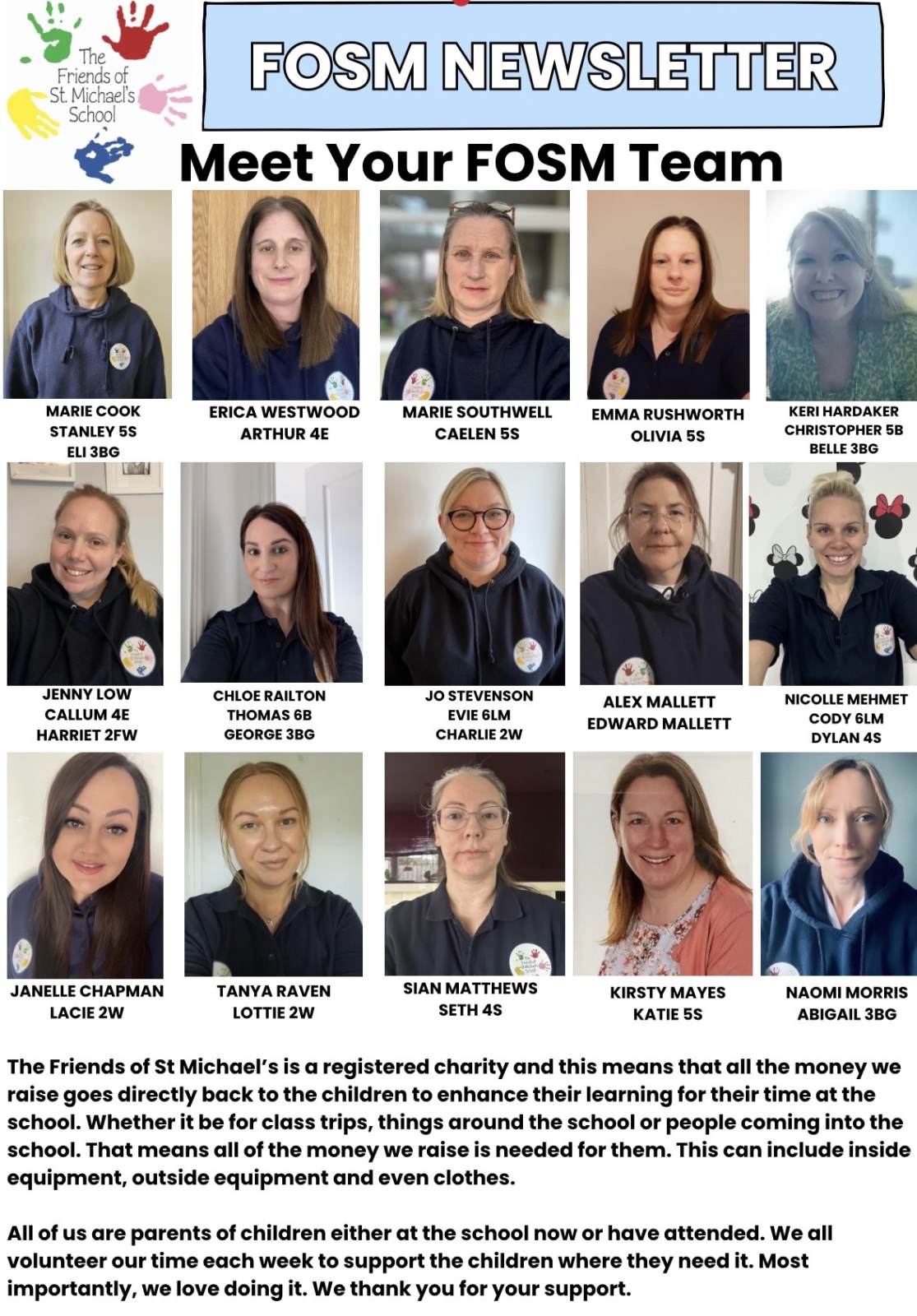 The Friends of St Michael’s (FOSM) are a group of volunteers made up of parents of current and former students. We give our time to organise a wide variety of activities for the children of St Michael’s including school discos, the Christmas Fair, movie nights, sponsored events and of course our main event of the year the Summer fete. Every penny we raise goes straight back to school to give the children the extra opportunities and experiences that they deserve.
